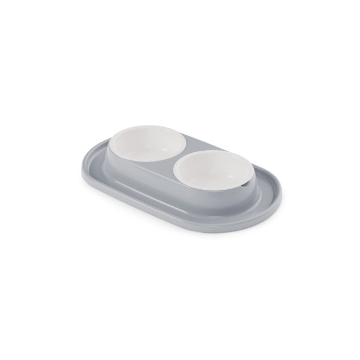 Для удобства в использовании двойная миска на подставке, предназначенная для кормления животных, содержит несколько частей: две съёмные ёмкости и основание с выемками. Также съемные ёмкости имеют шарообразную форму, поэтому частички еды не будут скапливаться в уголках как в обычных тарелках, и Ваш питомец будет съедать всё до последней крошки. Конструкция дна ёмкостей позволяет обеспечивать удобный угол наклона для приема пищи, а противоскользящие ножки делают изделие устойчивым при использовании. Обе чаши можно с легкостью мыть по отдельности. Всё изделие выполнено из высококачественного пищевого пластика, который совершенно безопасен для животных. Такая миска не только понравится вашему питомцу, но и отлично впишется в интерьер дома.